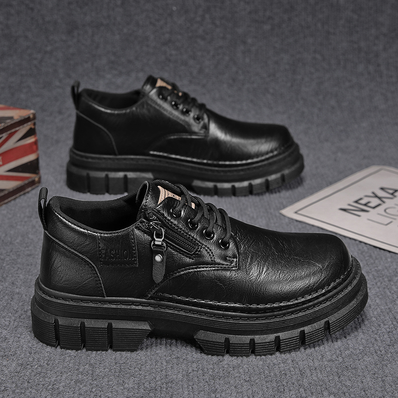 男鞋秋季青少年休闲厚底增高皮鞋冬季百搭工作运动黑色低帮马丁靴