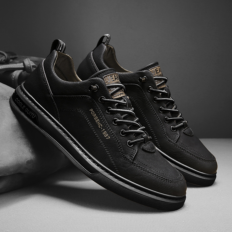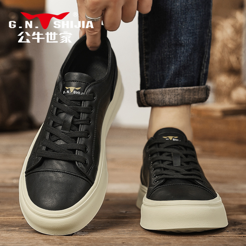 公牛世家男鞋板鞋男款2025新款秋季休闲鞋青少年真皮鞋子黑色潮鞋