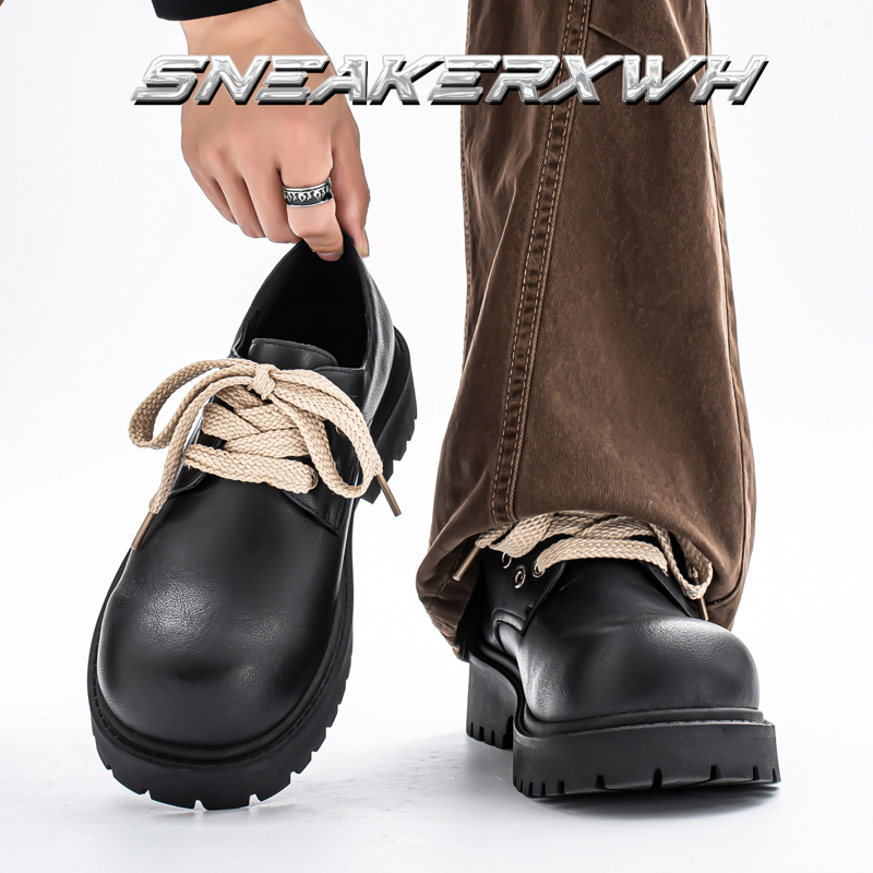 男鞋秋季潮流休闲百搭皮鞋青少年运动厚底冬季工作黑色大头德比鞋