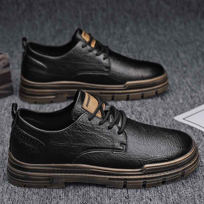 工作男鞋春季防水防滑休闲皮鞋青少年板鞋男百搭厚底运动潮鞋夏季