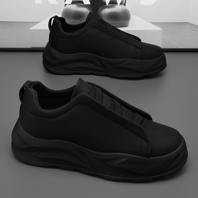 男鞋秋季防水防滑青少年运动一脚蹬厚底小白板鞋休闲工作增高皮鞋