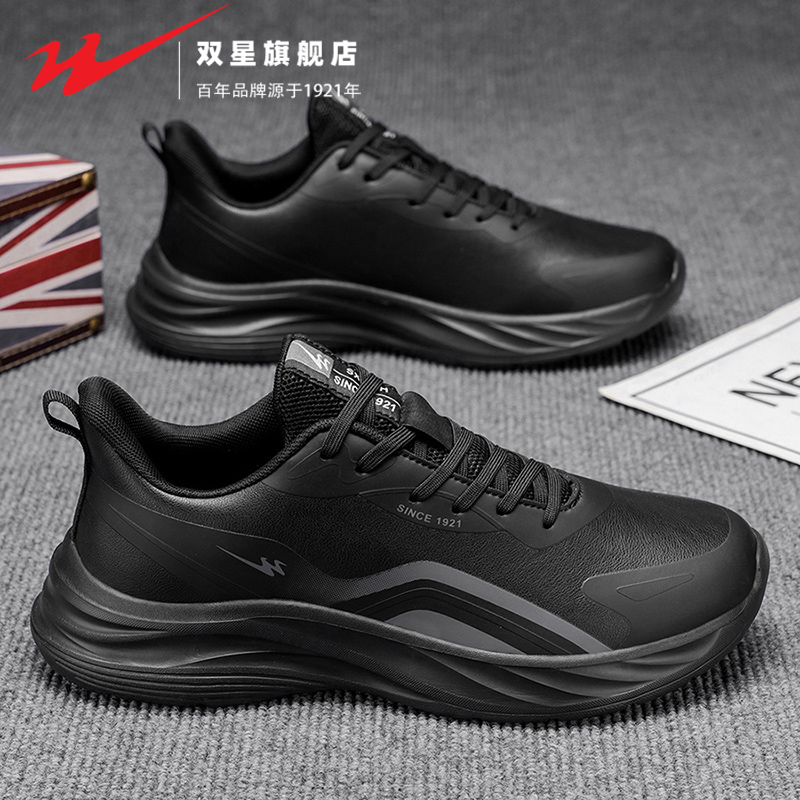 双星男鞋春秋款男士休闲皮鞋黑色健步爸爸鞋青少年男款运动跑步鞋