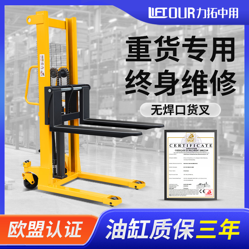 手动堆高车液压升降叉车油压升高车搬运装卸车铲车1吨2吨推高车