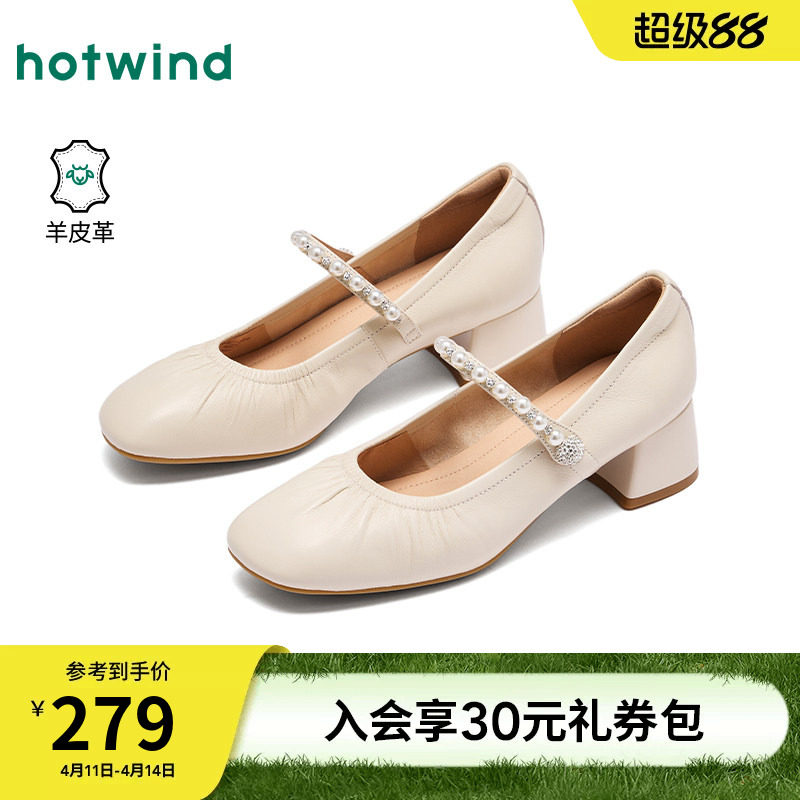 热风浅口单鞋女2026年春季新款珍珠一字带女鞋休闲鞋子H18W26105