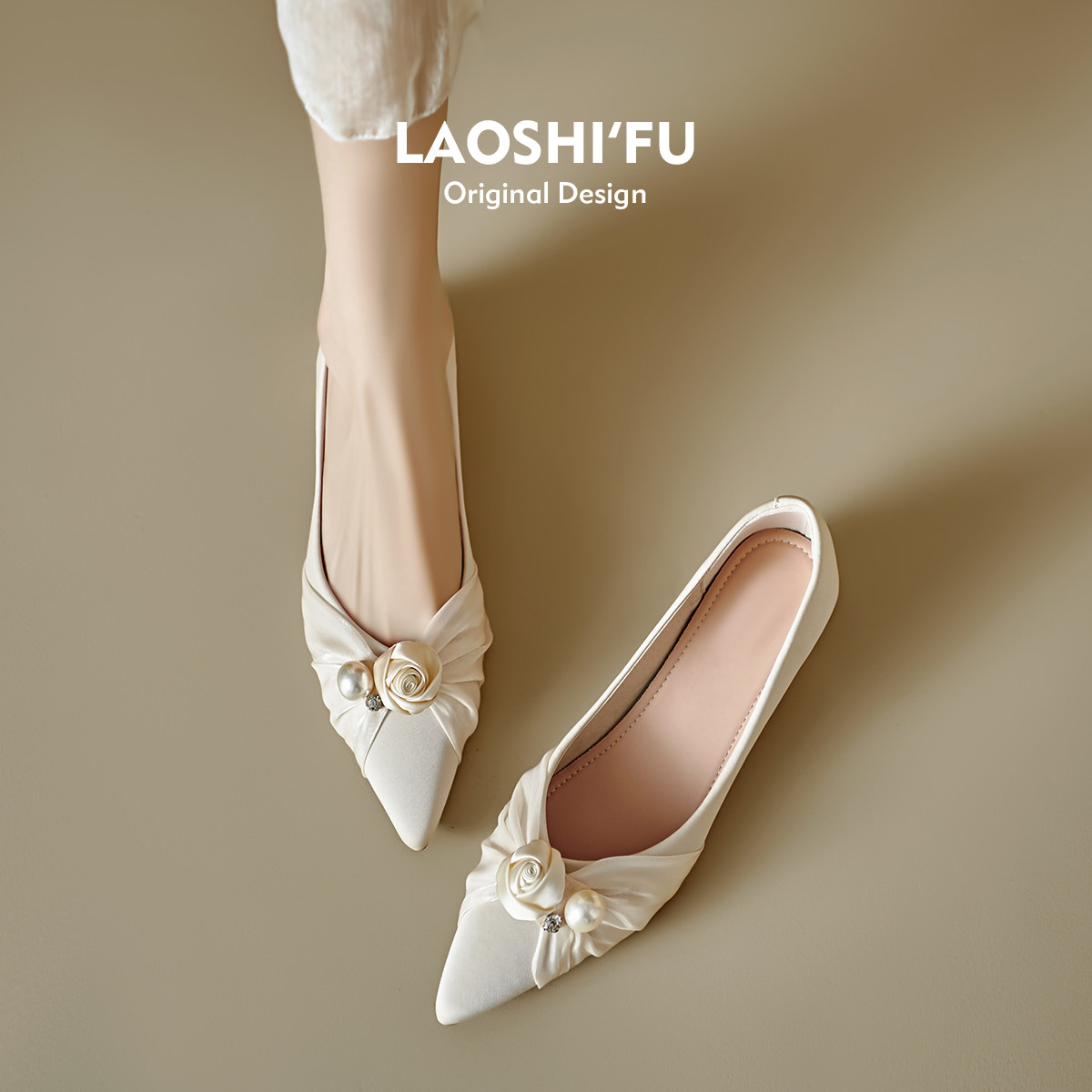 REEMOOR睿慕2026春季新款法式珍珠尖头浅口单鞋平底鞋女鞋