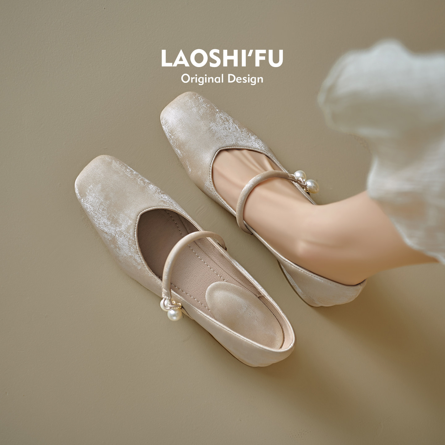 羊皮版!法式珍珠浅口平底玛丽珍鞋女国风新中式温柔鞋配裙子单鞋