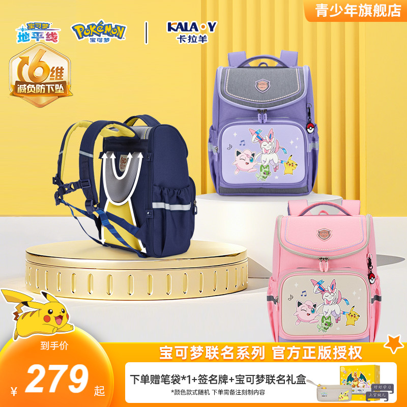 【全年低价】【宝可梦联名款】卡拉羊1-4-6年级小学生书包男生六维减负防下坠大嘴书包女双肩包2025新款