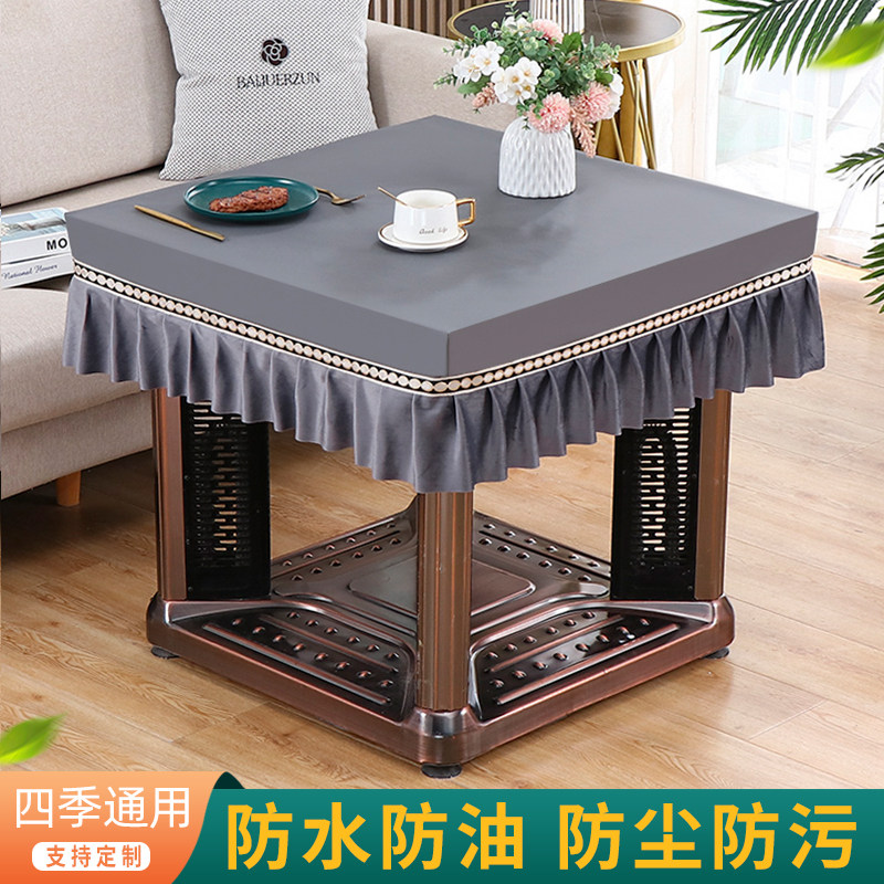电暖炉罩套防水防油烤火桌布正方形烤火桌罩家用麻将机电暖炉桌布