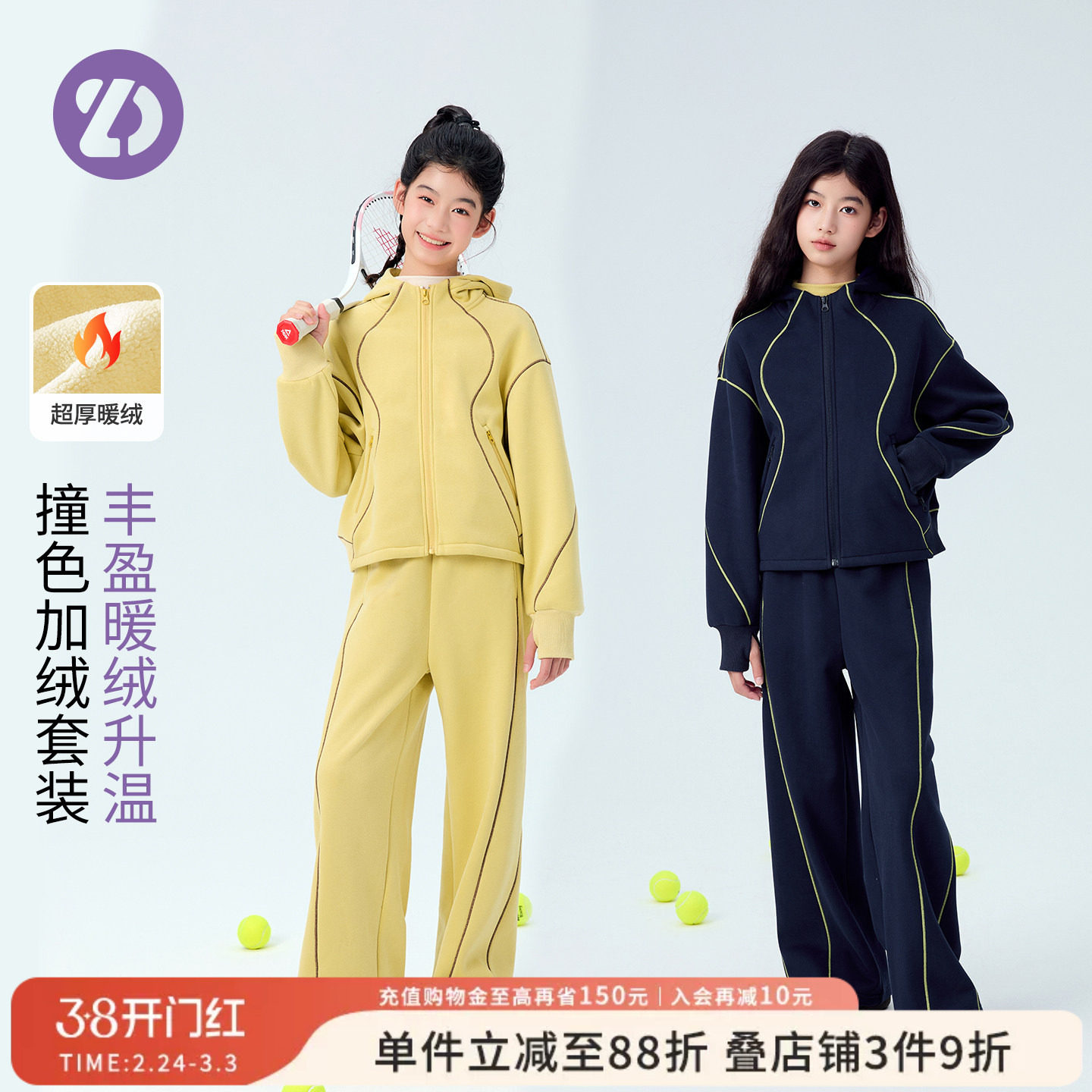 - 金丝绒加绒运动套装女