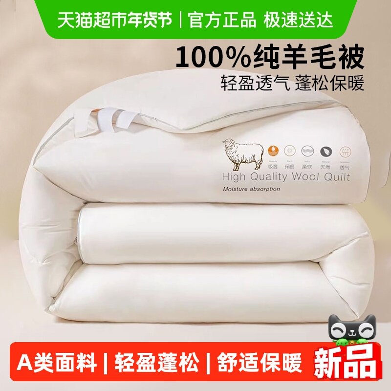 猫人羊毛被子被芯100纯羊毛冬被羊绒被加厚保暖宿舍单人春秋被褥