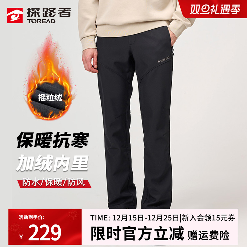 探路者软壳裤男2025新款户外运动防泼水防风徒步登山加绒休闲裤女