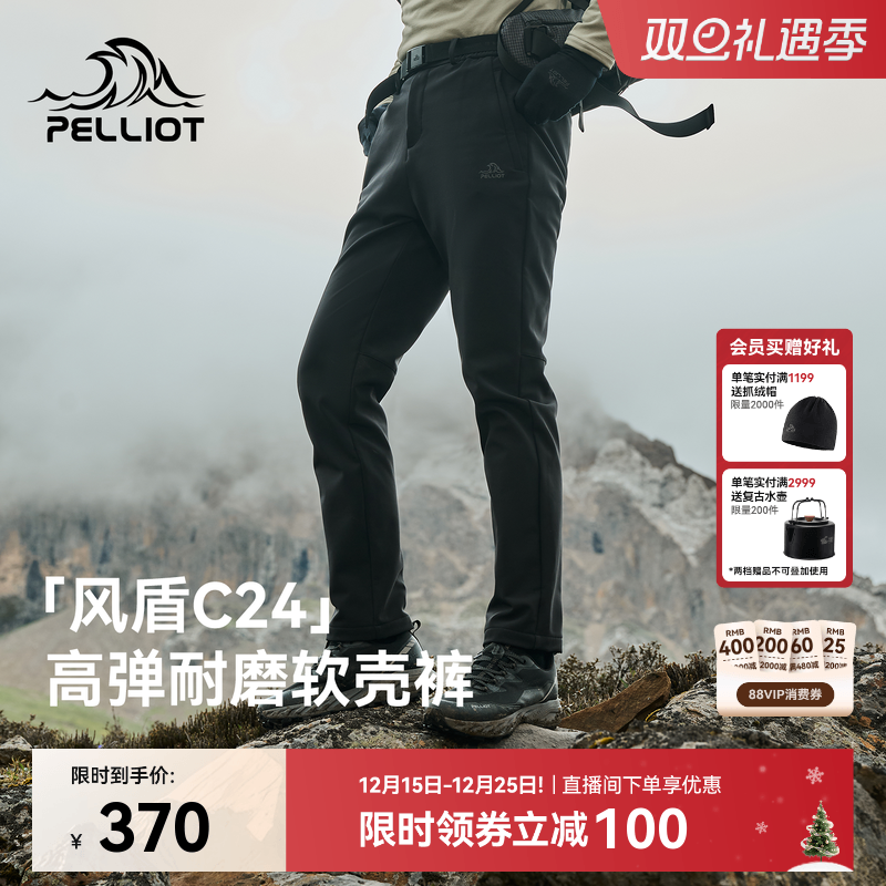 【风盾C24】伯希和户外软壳裤男冬季防风保暖徒步登山裤运动裤子