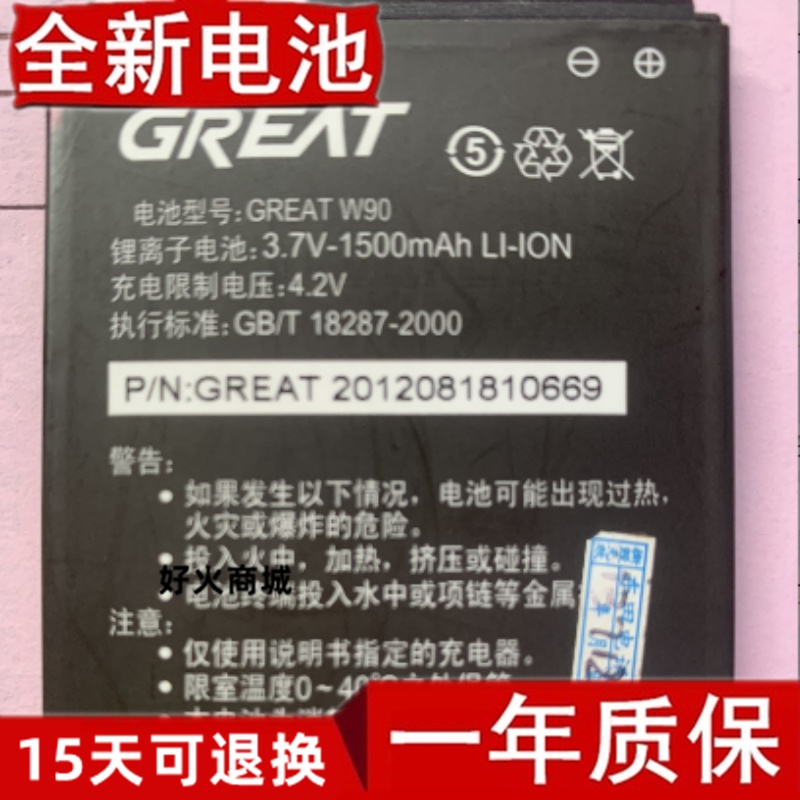 适用 格莱特GREAT W90手机电池 W90定制手机电池原装