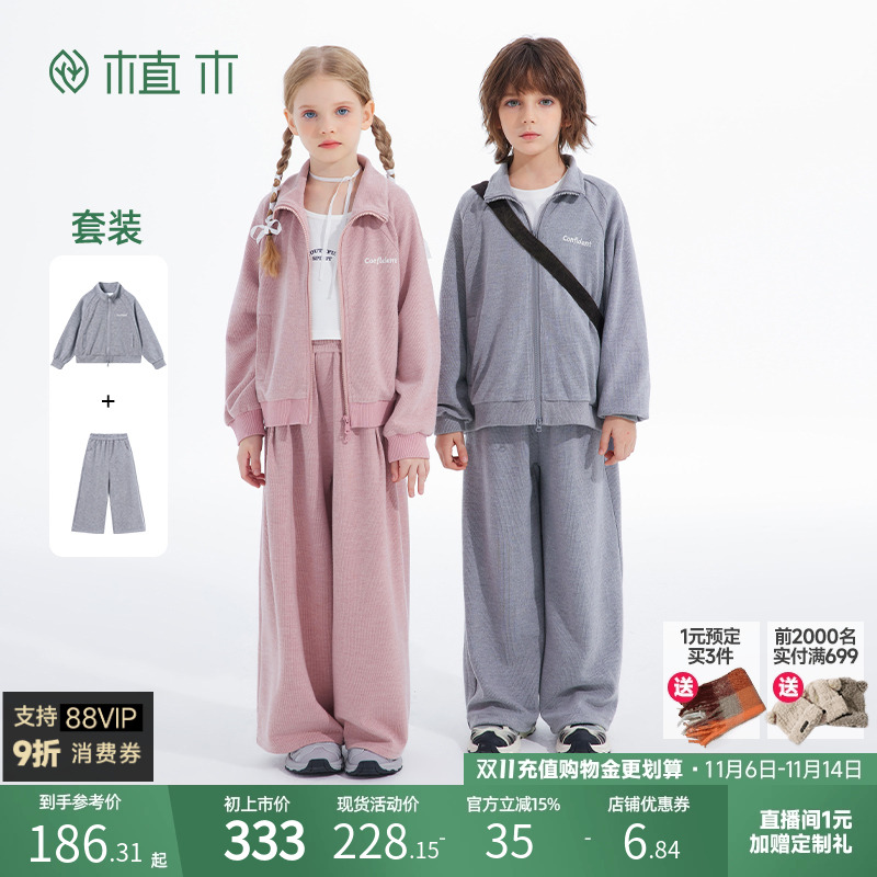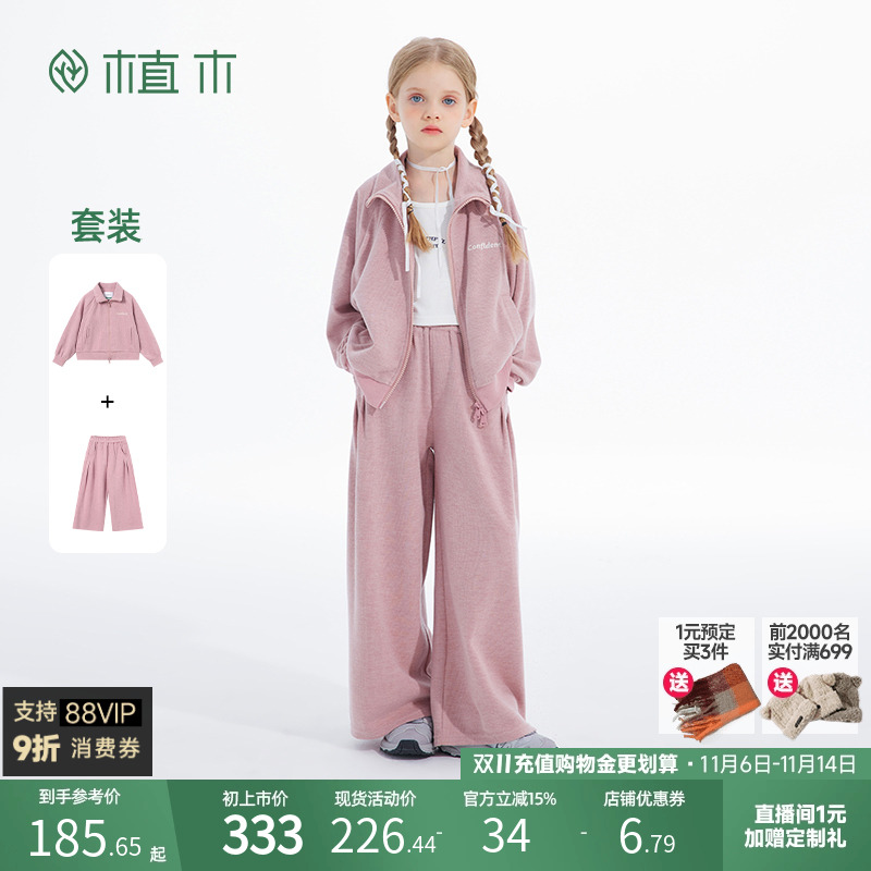 植木童装女童套装2025新款秋冬中大童运动套装衣服儿童套装两件套