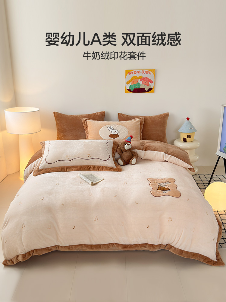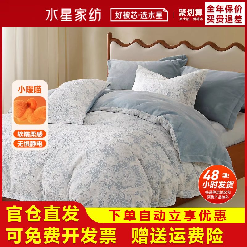 水星家纺牛奶绒四件套暖绒保暖A类抗静电床单被套秋冬床品25新款