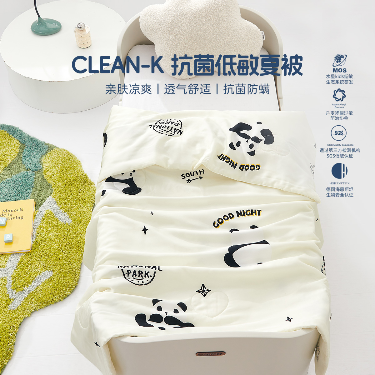 水星家纺60S天丝莱赛尔三四件套A类卡通熊猫被套床单夏季趴趴熊猫