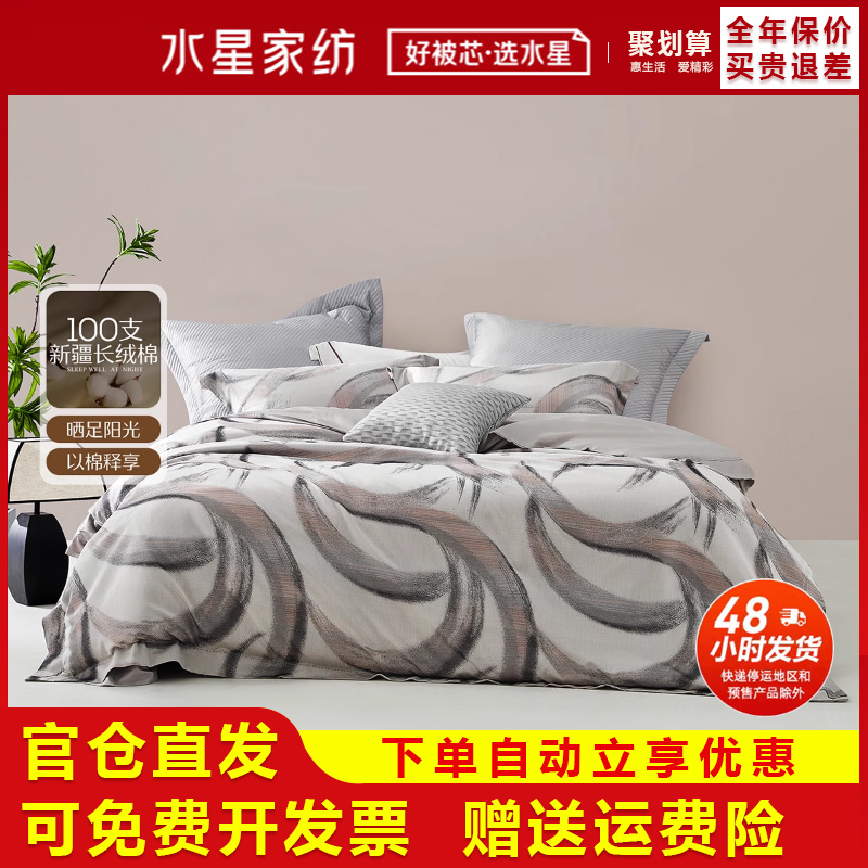 水星家纺官方正品长绒棉全棉纯棉床单被套轻奢套件床上用品四件套