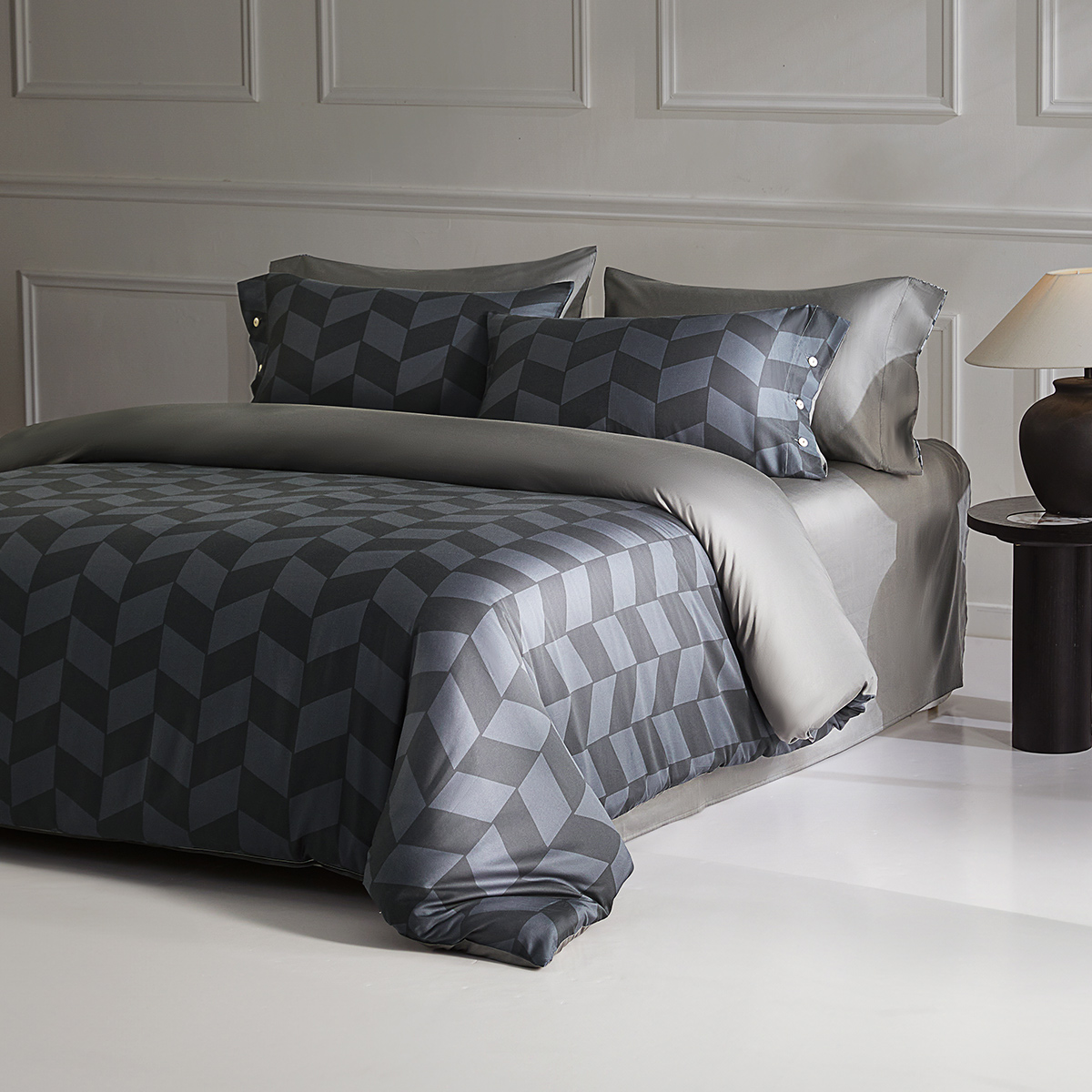 水星家纺60支长绒棉四件套抑菌贡缎床单被套简约套件风格派·黑以
