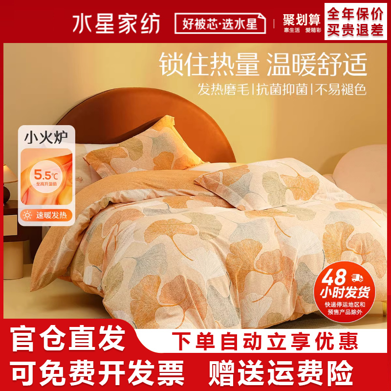 水星家纺磨毛秋冬保暖四件套全棉抗菌家用床单被套套件单双人床品