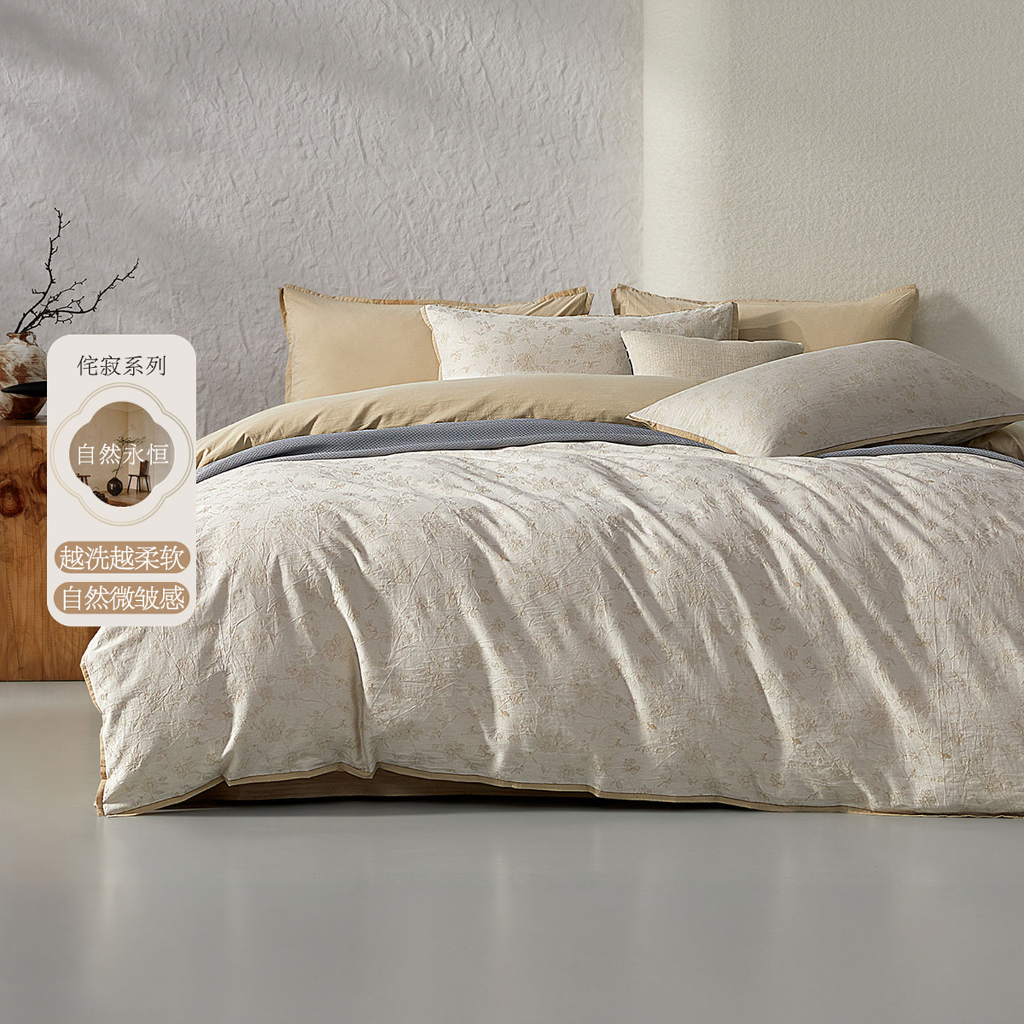 水星家纺水洗棉四件套A类全棉侘寂风素雅床品自然永恒微澜25新品
