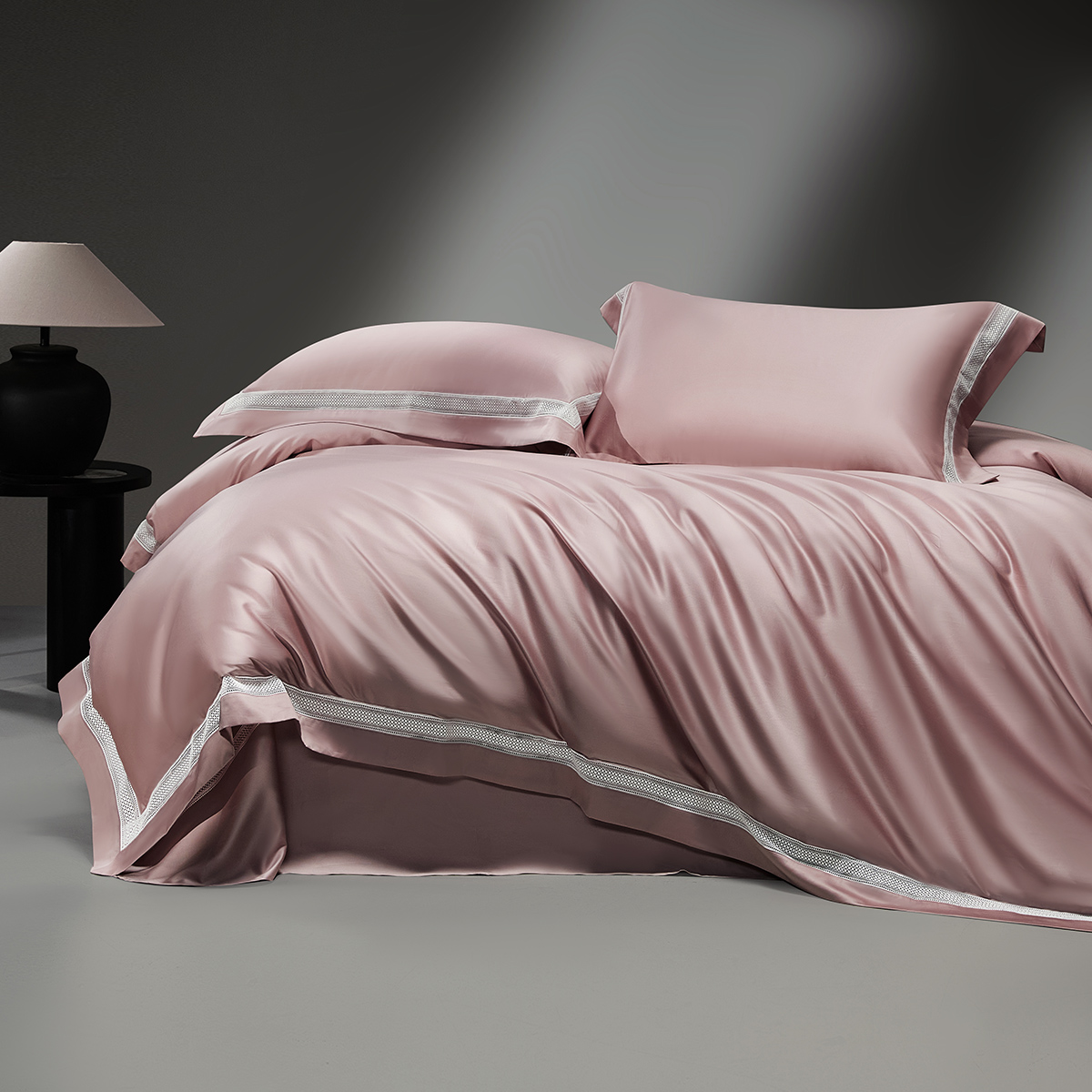 水星家纺60S长绒棉全棉贡缎四件套A类抑菌简约床品风格派·棱镜粉