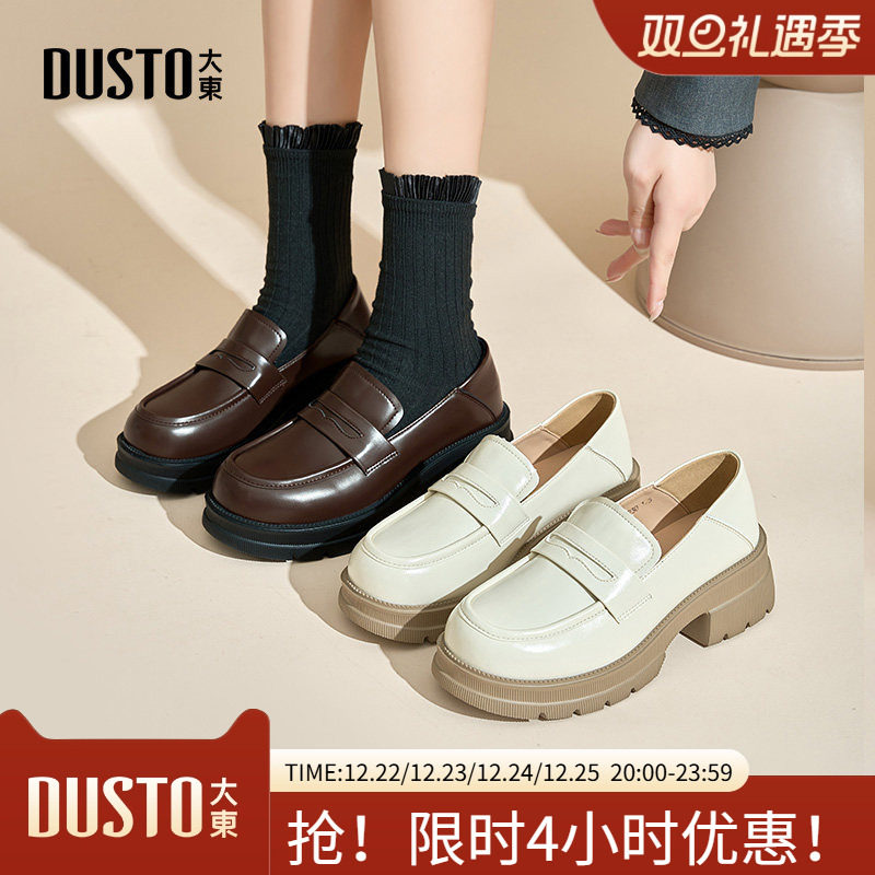 大东厚底乐福鞋女鞋2025秋季新款时尚粗跟中跟圆头黑色小皮鞋0141