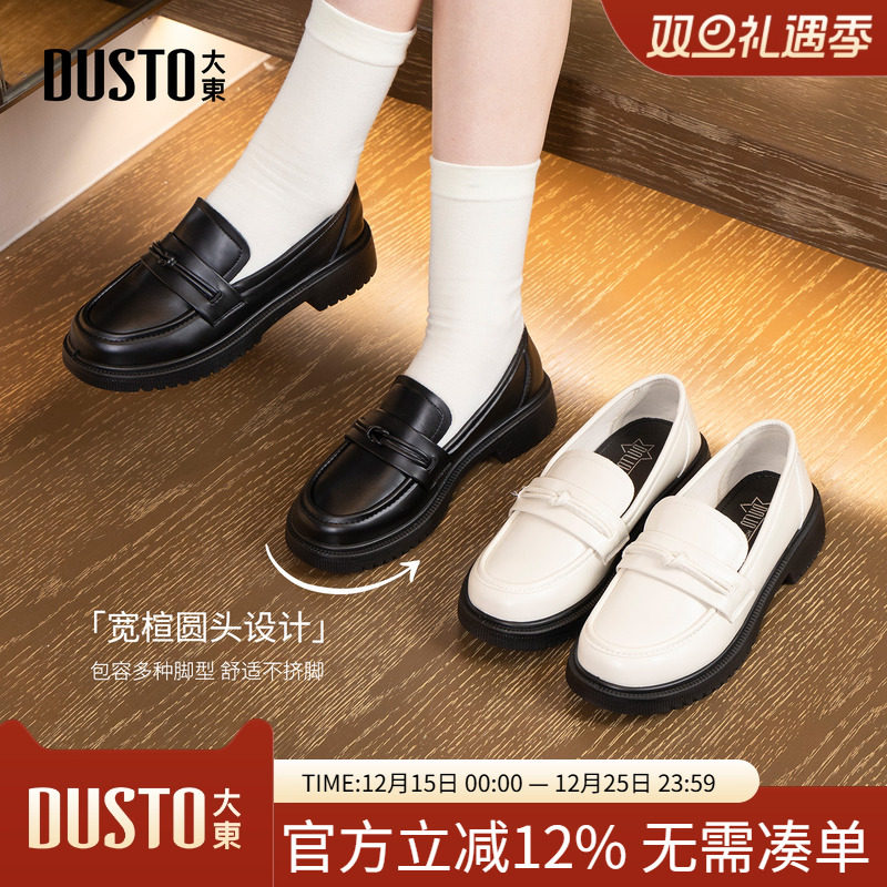 大东时尚小皮鞋女2025秋季新款简约风中跟粗跟厚底乐福鞋圆头鞋