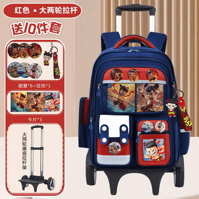 哪吒拉杆书包小学生一三六年级男孩背拉双肩包手拖包爬楼梯卡通包
