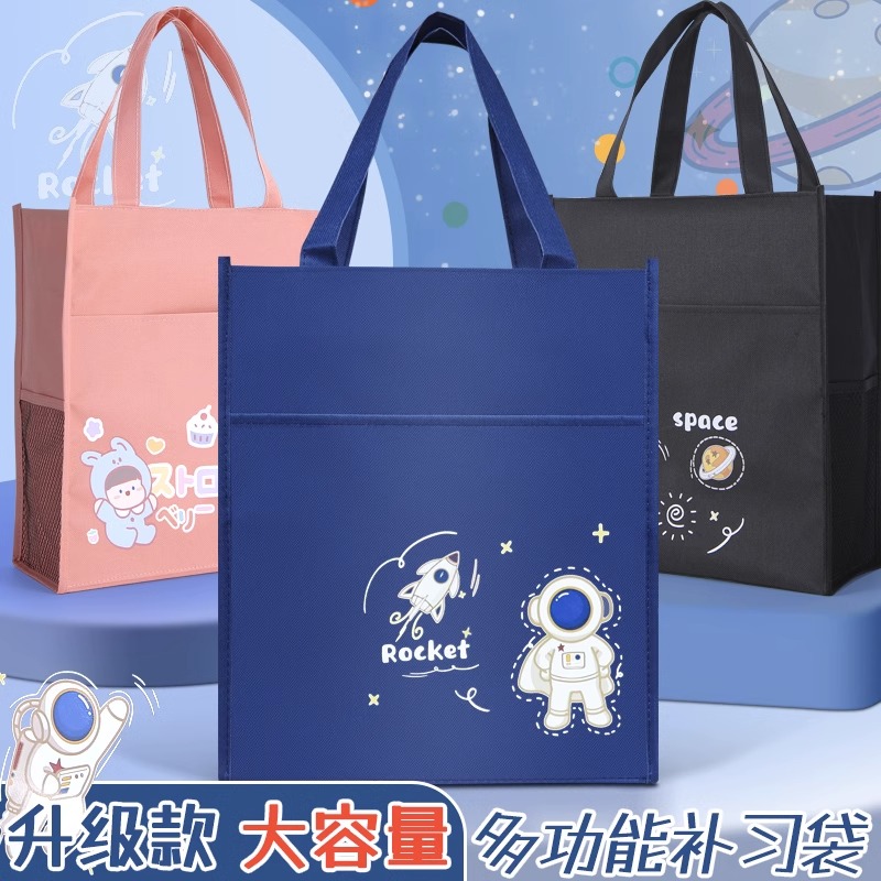 男孩补习袋小学生手提袋拎书袋补课包学生女孩专用拉链式美术袋文件袋收纳袋手提帆布包初中生课外补习班书包