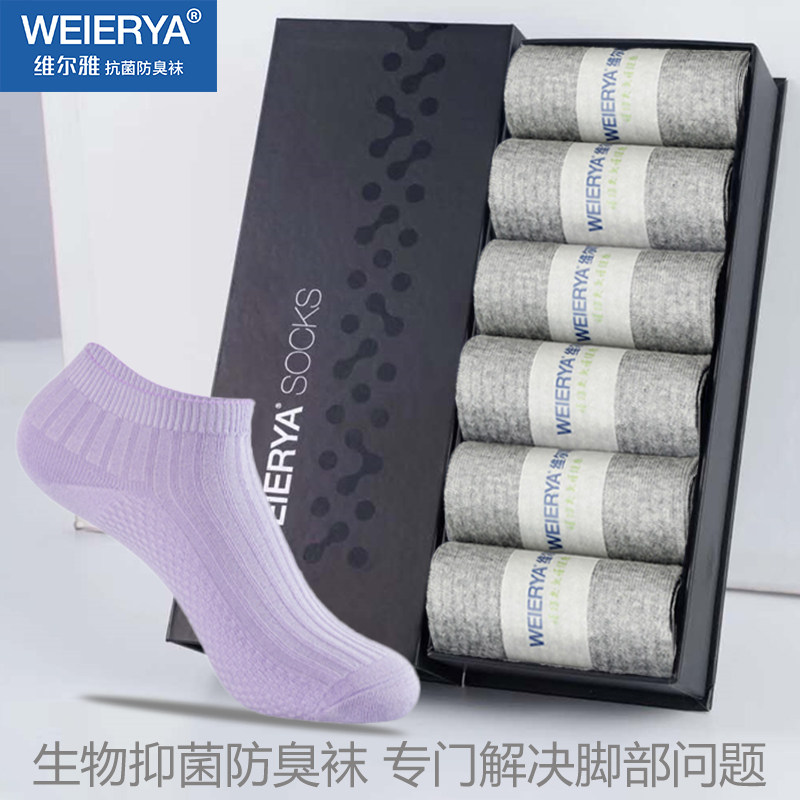 维尔雅防臭女袜纯棉袜浅口短筒袜四季运动袜吸汗舒适透气提花船袜