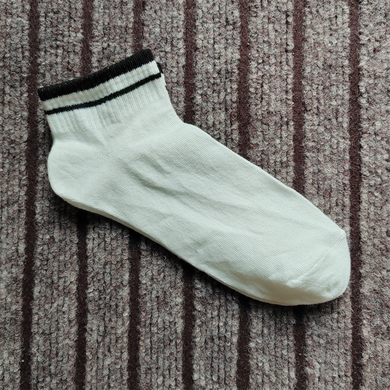 短袜春秋款男女袜纯棉四季条纹短筒透气无骨袜子纯色条纹个性百搭