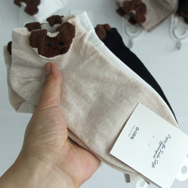 女袜子韩国东大门棕色小熊纯棉短筒袜春夏秋四季吸汗短袜时尚百搭