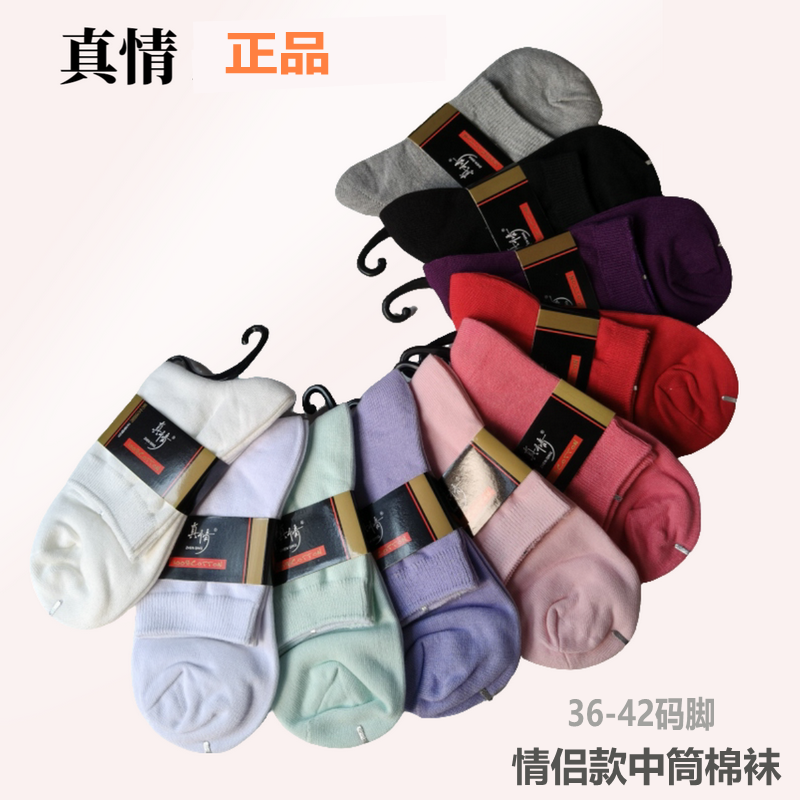 4/6真情袜子糠果色男女适用纯棉休闲袜情侣四季款中厚中短筒女袜