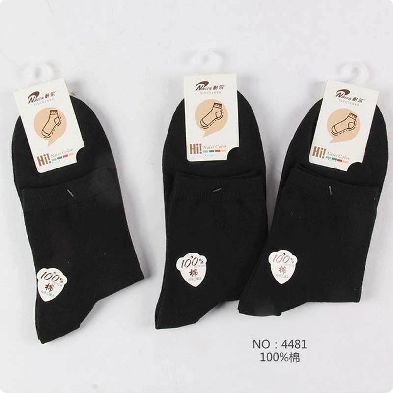 耐尔纯棉女袜纯黑色中筒全棉袜子春秋防臭透气短筒棉袜四季款4481