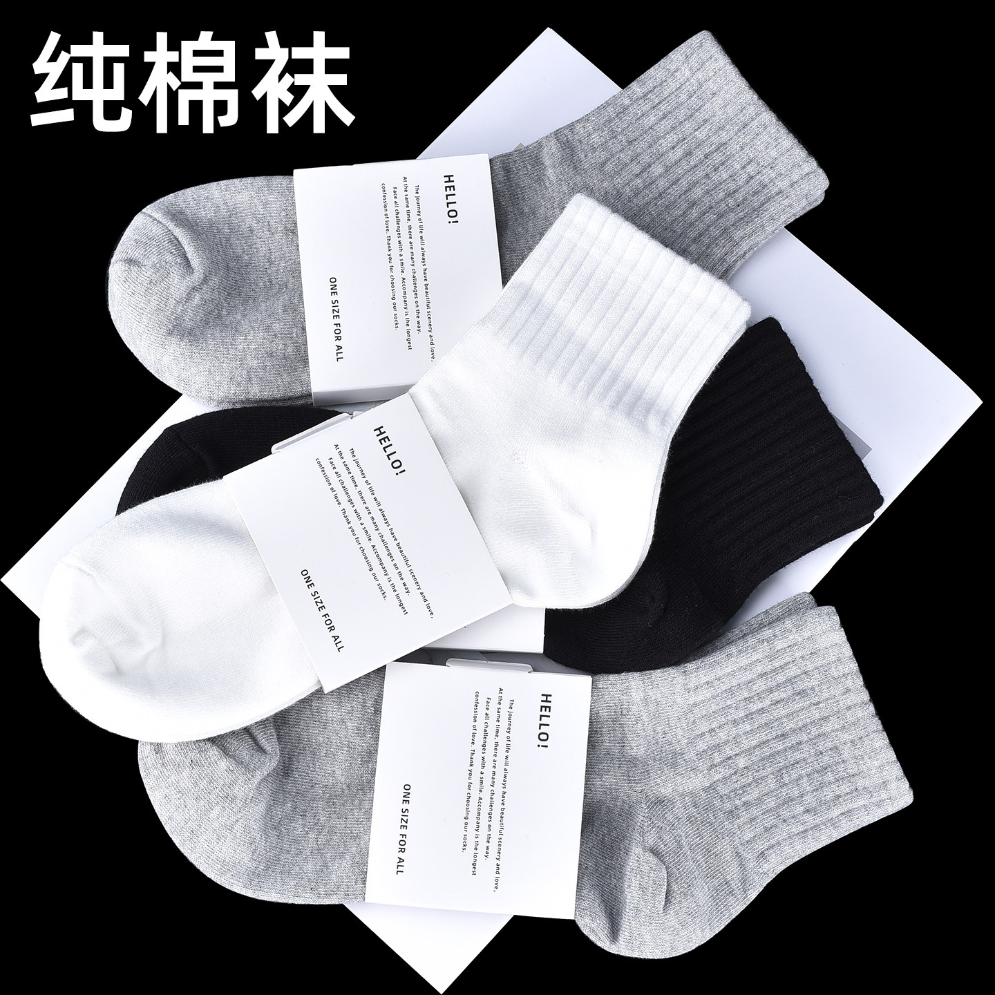 纯棉 女袜秋冬黑色袜子中筒防臭全棉短筒四季白色男袜礼盒正装袜