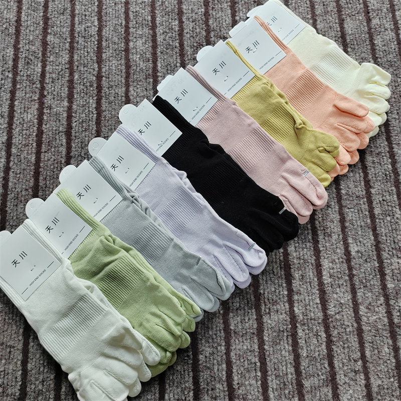 四季薄款五指袜女纯棉短筒分趾袜网眼透气中筒纯色五趾袜短筒女袜