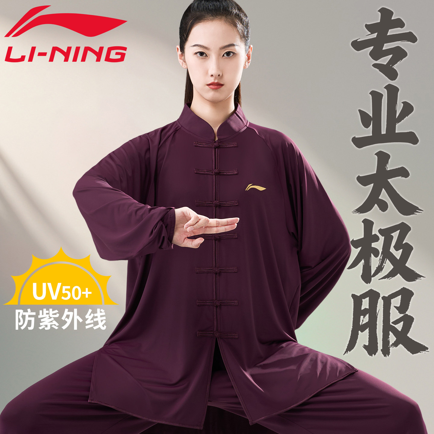 李宁太极服2026新款防晒女款武术表演服八段锦太极拳练功服男夏季