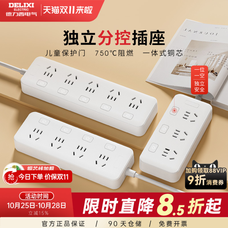 德力西分控插座排插独立开关插排多功能插板多孔插板插线板拖线板