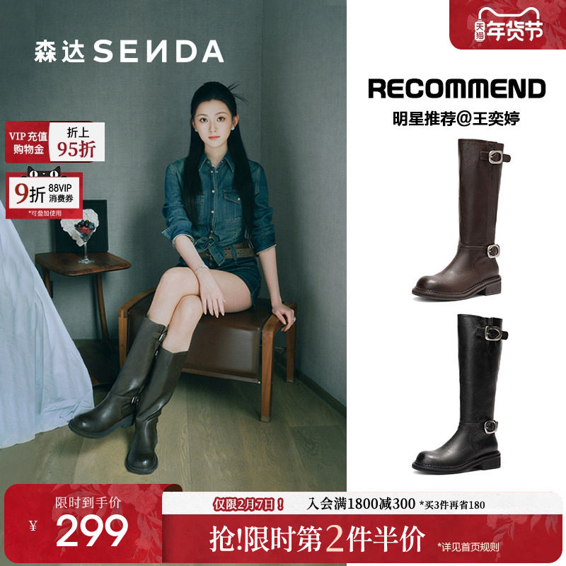 - 粗跟长筒靴