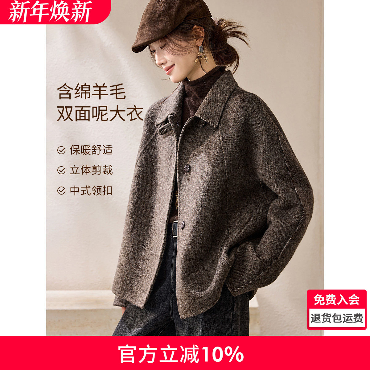 百家好短款连帽羊毛双面毛呢大衣女款25冬季新款宽松高级呢子外套