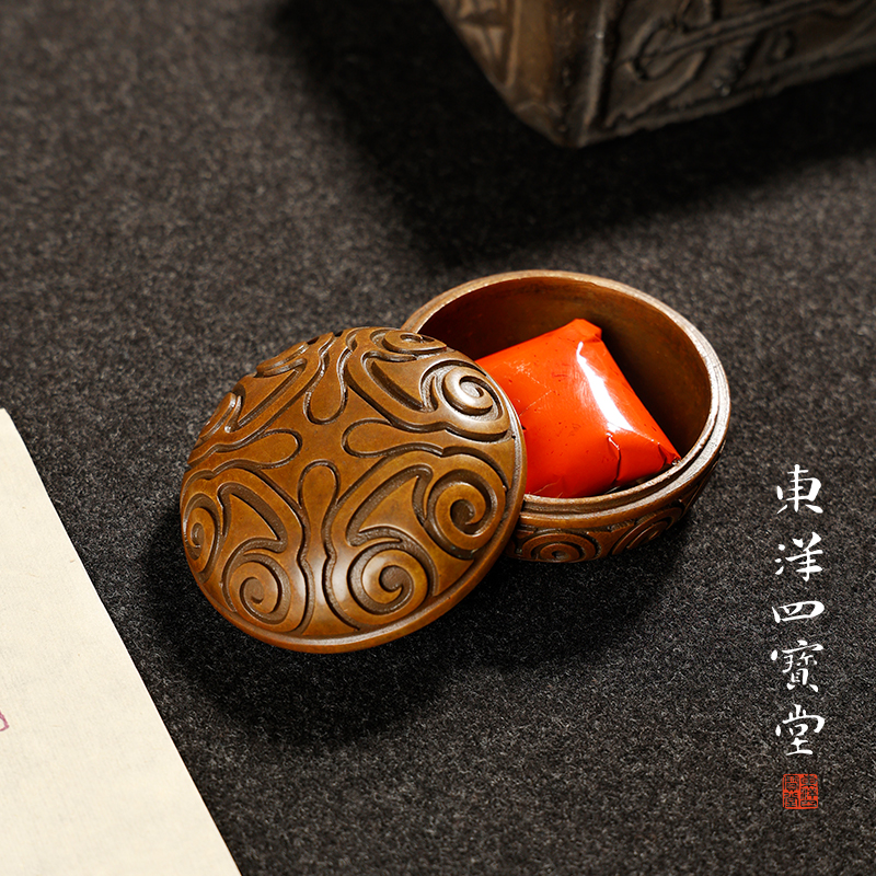 青铜如意纹印泥盒 精品礼品书法国画文房摆件仿古铜器镇纸收纳盒