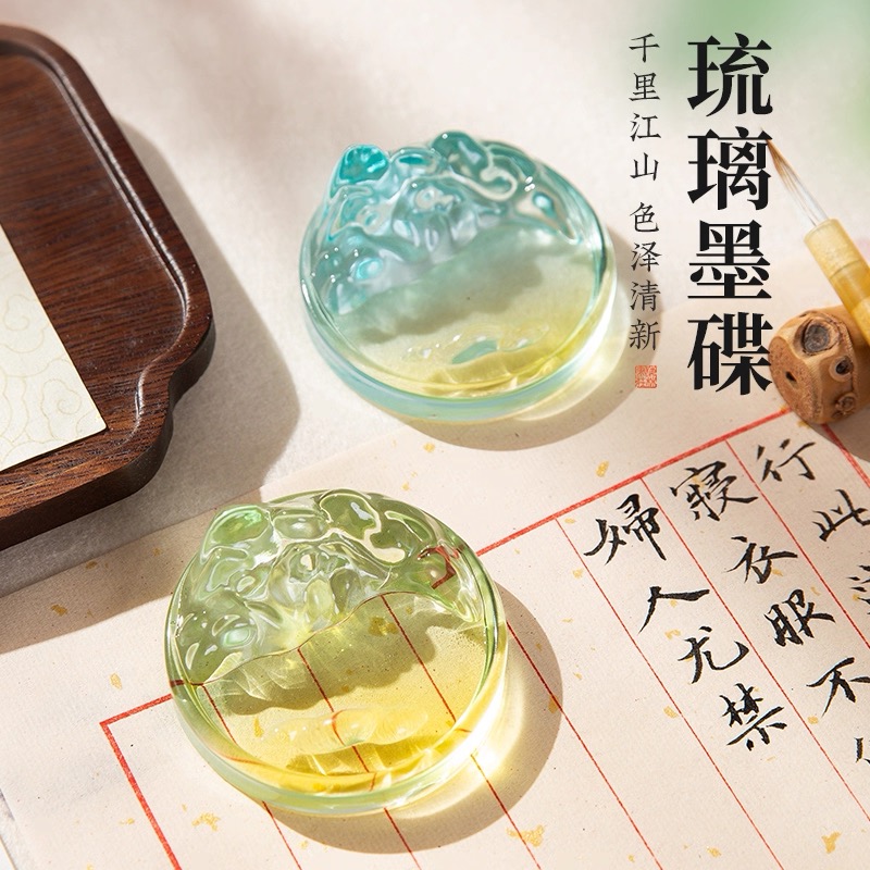 琉璃墨碟笔舔多功能墨盘墨蝶初学者学生练毛笔字书法专用防干水晶墨碟彩色渐变墨碟文房摆件小楷墨池国画创意