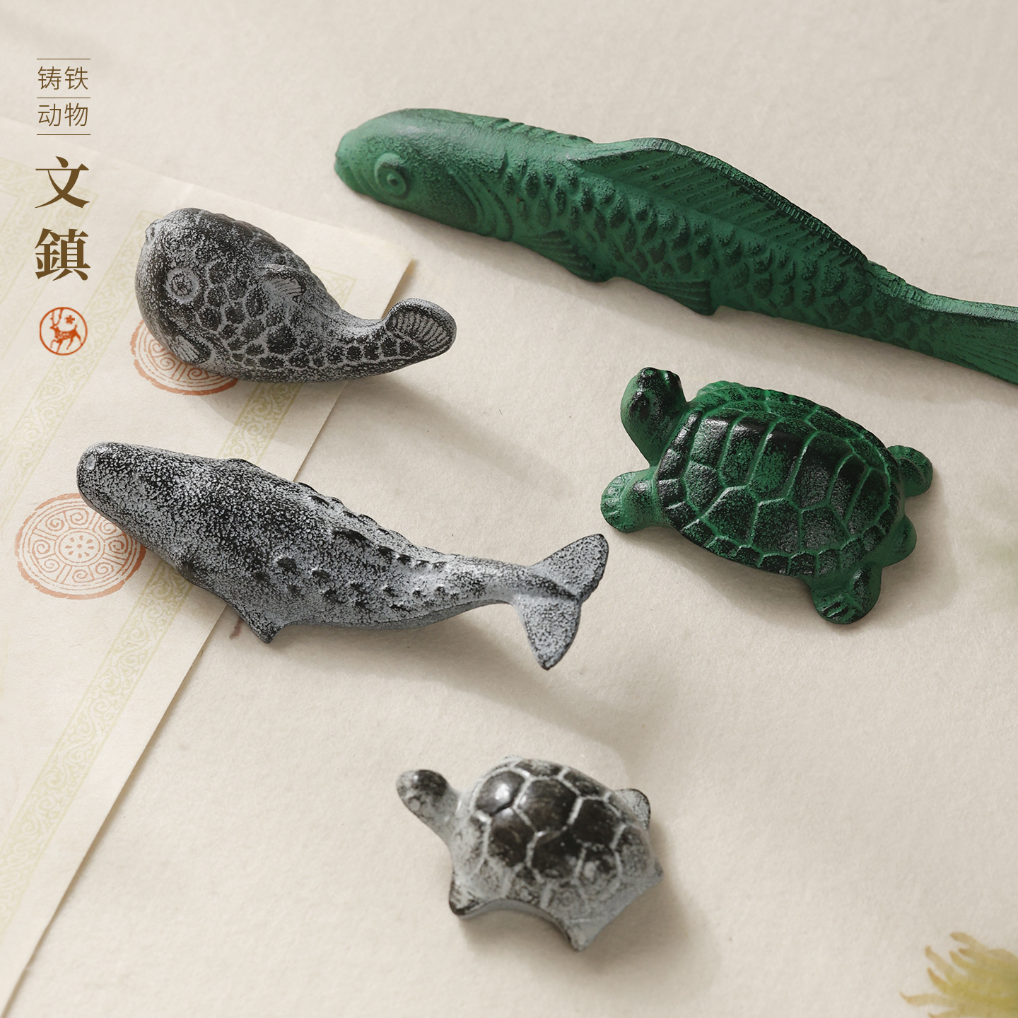 【2件9折】河豚铸铁镇尺镇纸学生 金属书法可爱动物文房摆件文镇