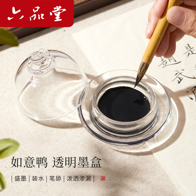 六品堂透明墨盒印泥盒书法专用印泥缸小墨罐墨汁文房四宝学生砚台不干墨多功能镇纸玻璃墨池带盖文房摆件墨碟