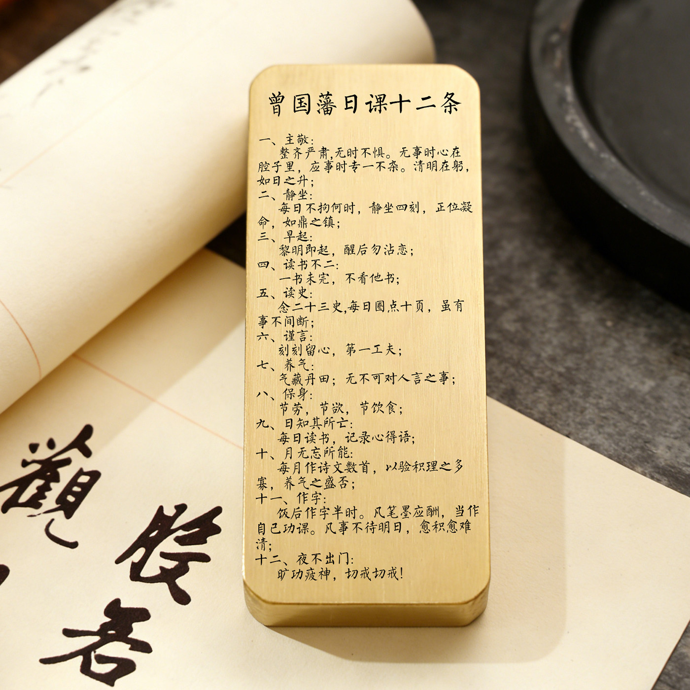 黄铜特色镇纸曾国藩十二条书法文房摆件励志激光刻字压纸文创礼品