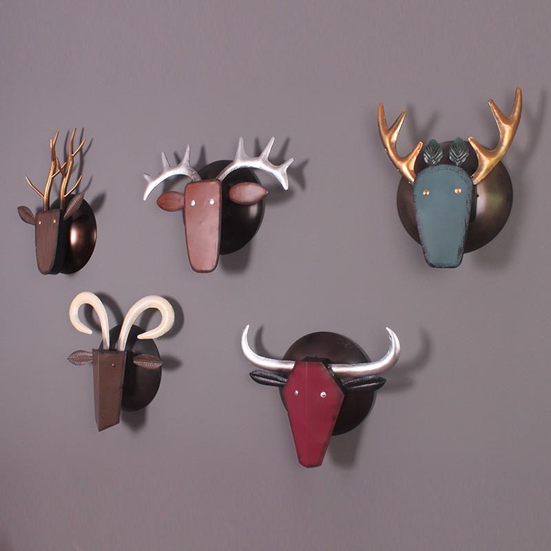 热销复古怀旧铁艺动物头壁饰牛头鹿头酒吧网咖墙饰墙上装饰挂件创