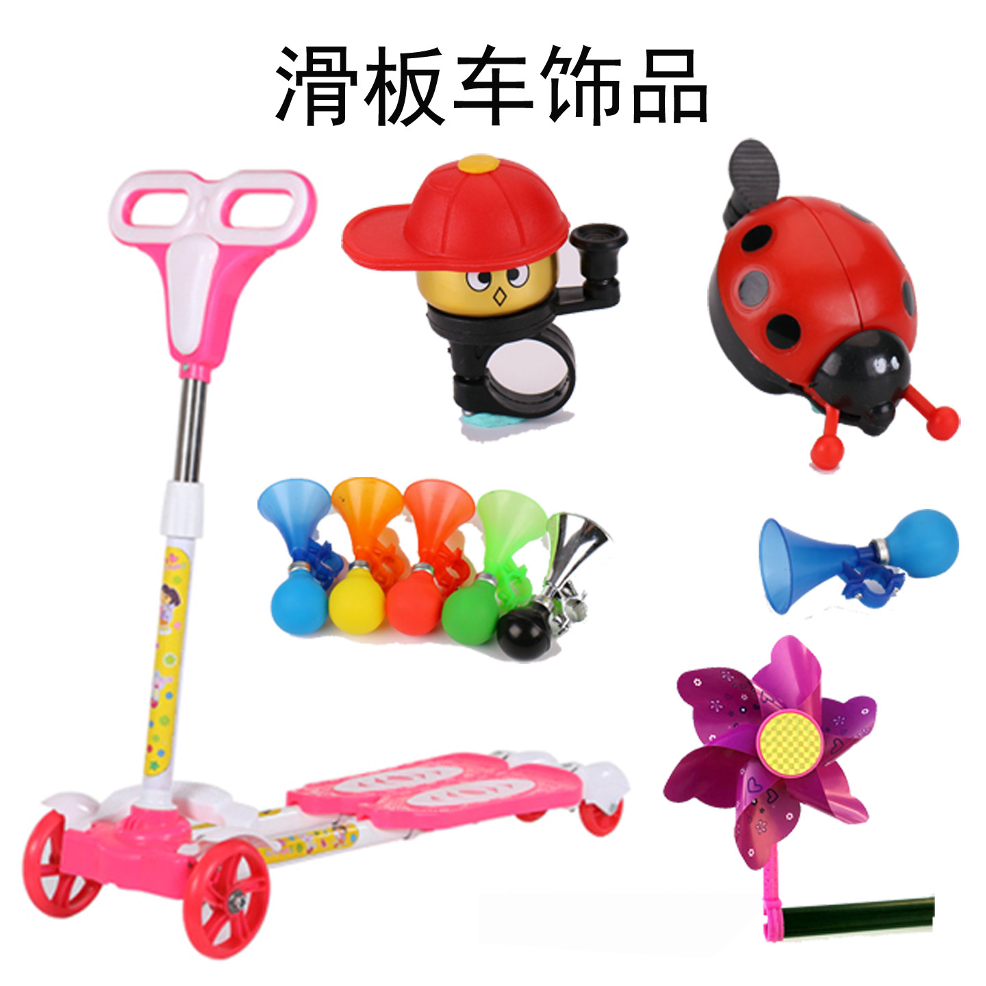 儿童玩具滑板车配件自行三轮车饰品小孩彩带编织筐风车铃铛倒车镜
