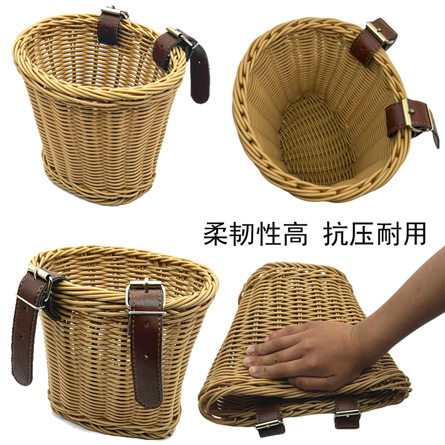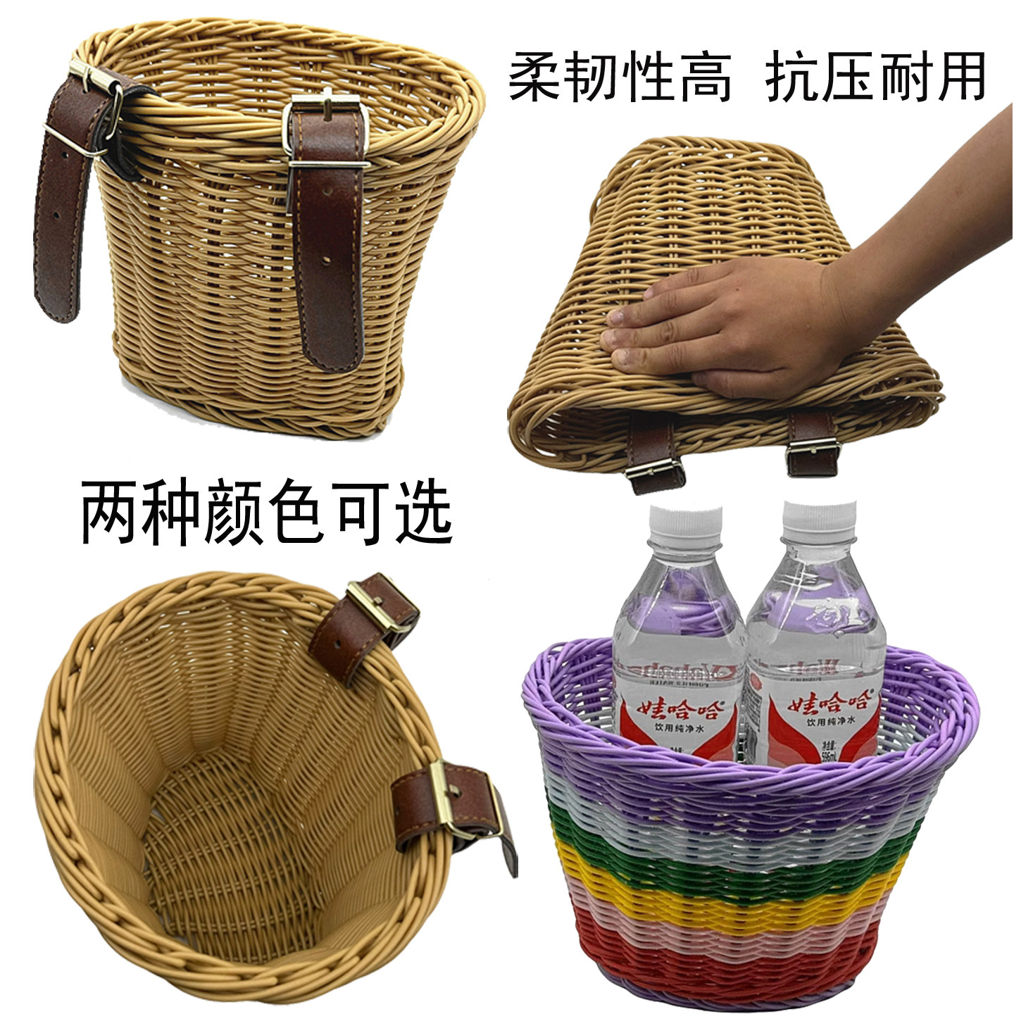 儿童宝宝自行车前车筐三轮滑板车复古编织车篮子通用遛娃神器车篓