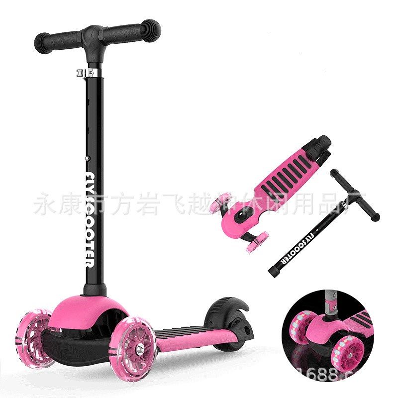 儿童三轮滑板车爬爬虫折叠滑板车可调带灯闪光轮铝合金外贸滑板车