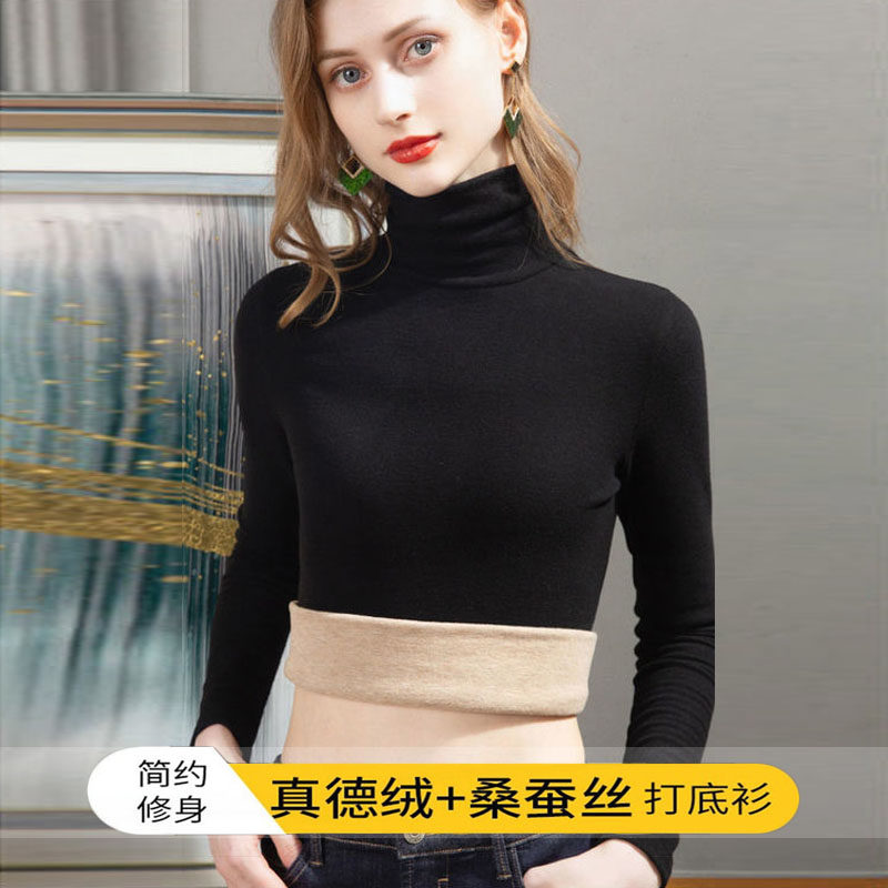 高领羊绒蚕丝德绒打底衫女妈妈上衣秋冬新款内搭保暖加绒长袖t恤